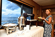 サンセットクルーズ船は2階建てになっていて、1階部分にはバイキングコーナーが設けられています。