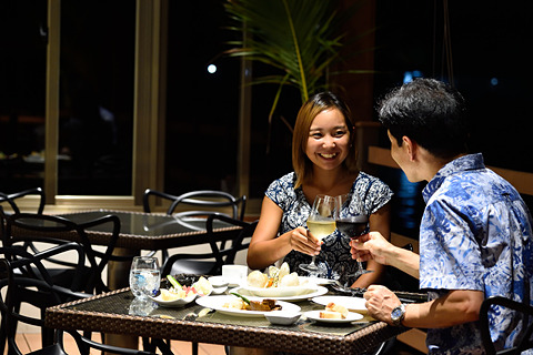 マリーナ カフェ ヴィータに戻ってからしっかりディナーを楽しむのもよし、夕陽を見ながらディナーを楽しむもよし、お好みに合わせてコースを選べます。