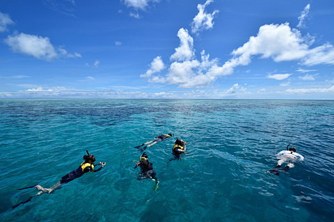 インパックツアーズの「秘境!ノースアイランドツアー」では、環境保護区でのスノーケリング体験ができます。パラオ北部はこれまで観光ツアーがほとんどなく、まさにPristine Paradise(手つかずの楽園)。青く穏やかな空と海、快適にボートは進み、ポイントへ到着。ゴーグルとフィンを取り付けて海に入ると、そこは天然の水族館でした。