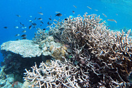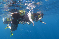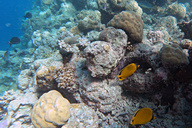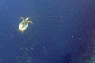 サンゴの隙間にはカクレクマノミやその仲間がたくさんいましたが、今回はウミガメとの出会いを目指してちょっと深い方にもチャレンジ。そんなに都合よく出会えないかな……と思っていたら、なんと、目の前を横切る大きなウミガメを発見! 慌ててカメラを向けますが、のんびりした印象とは裏腹に泳ぎは得意らしく、そのままスーっと深海へと潜っていきました。