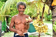 ランチを終え、カヤンゲル島の村へと歩きます。カヤンゲル環礁で唯一人が暮らしているこの島には、現在40名ほどがいるそうです。島のオーナーさんが出迎えてくれて、あいさつ代わりに野生のバナナを振る舞ってくれました。野生の完熟バナナ、こんなに美味しいとは。ペットのコウモリへの餌やりは、なんと口移し。もちろんこれは、地元の方だけの高度なテクニック。島の道沿いにはバナナ、パラワンレモン、ノニなど、とにかく自然の恵みがいっぱいです。