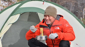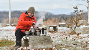 今回は、仕事柄キャンプ場など高地への移動が多く、初冬から春先までスタッドレスタイヤを装着しているというアウトドアコーディネーターの小雀陣二さんに、「ひと足もふた足も早く」冬が訪れる北海道でアウトドアを楽しみつつ、冬道ドライブの危険性を確認してもらいます。