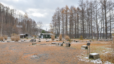 ちなみに標高は約286m(市街地+174m)。まだ太陽が昇りきらない昼前、ほんの少し坂を上った丘にあるキャンプ場には、うっすらと雪が積もっていました。