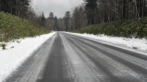 そして、気温が3℃を下回ると路面凍結の可能性が出てきます。外気温が3℃を示していても地表面付近では0℃以下になっている場合があり、濡れた路面は凍り付きます。