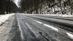 乾いた道がいきなりシャーベット状に! 冬道ならではの危険な路面の境目を発見