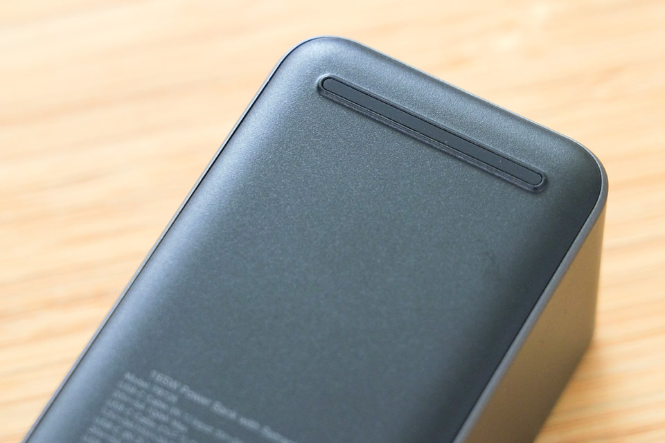使用中で60~40W、スリープ時に37Wあたりでチャージしていた。モバイルバッテリーはかなりの熱を持っていたが、途中で充電が止まることがなかったのは少々驚いた。冷却ファンは付いていないが、温度制御システムが搭載されていて、過熱による高温保護はもちろん、過充電、過放電、短絡といった13の安全保護機能を持ち、保護してくれる安全な作りになっている。