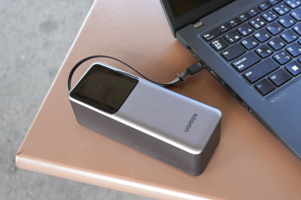 普段使いのモバイルバッテリーはちょっと容量が足りない。外出先でスマホよりタブレットやPCを使うことが多い。そんな人にちょうどいい容量大きめのモバイルバッテリーが、UGREENの「Nexode 巻き取り式 USB-Cケーブル内蔵 モバイルバッテリー 20000mAh 165W(PB726)」だ。