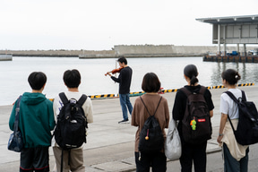 子供たちがお手伝いをしていた常呂漁港や広い玉ねぎ畑などに突然現われて演奏を披露してくれたプレイヤーの皆さん。子供たちのなかにはオーケストラ部でバイオリンをやっている子がいて、思いがけない場所で一流音楽家の演奏に触れ、泣いてしまったそうだ。