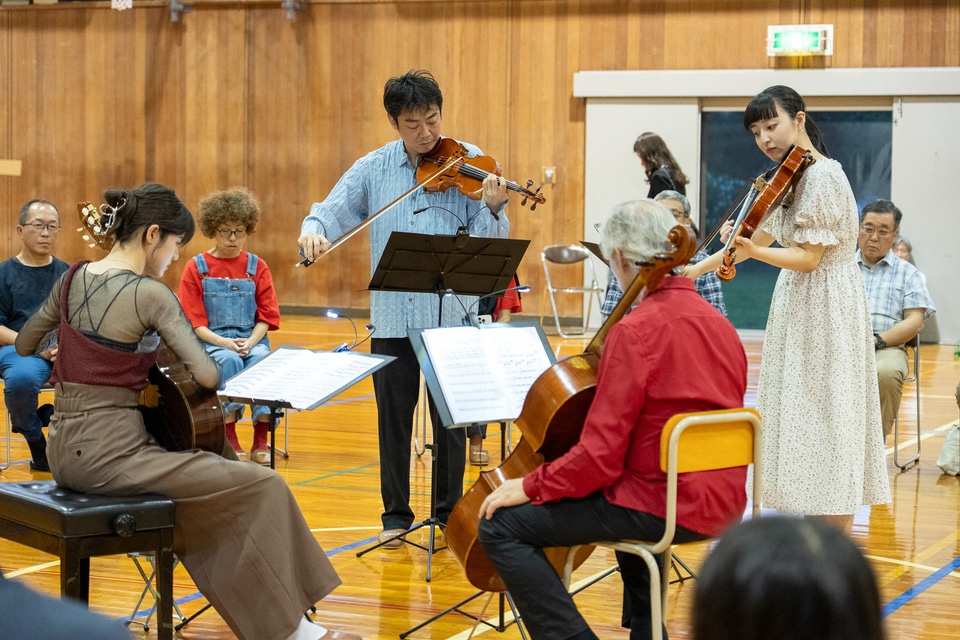 実は今回のプログラムには、特別ゲストが内緒で帯同していた。東京フィルハーモニー交響楽団のコンサートマスターを務めるバイオリニストの近藤薫さんら4名の音楽家の皆さんだ。