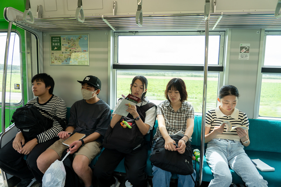 2日目は新潟チームが乗車していた札幌発のオホーツク1号に、旭川駅から東京チームが乗り込んで隣同士の席に座るというシナリオが組まれていた。目的地までの数時間、前日に見てきたもの、聞いてきたことを列車のなかで共有し合うという時間だ。