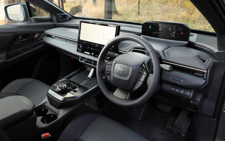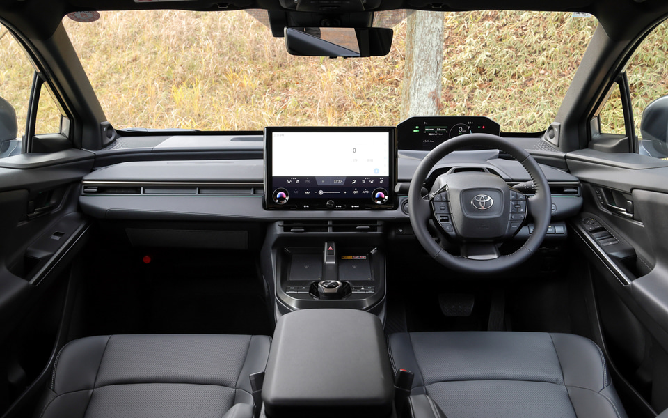 少し走り出してみて、すぐに「こんなに気持ちがよいクルマだったかな?」と驚いた。新しいbZ4Xは、各モデルの出力を向上しており、試乗車のZ FWDモデルはシステム最高出力が165kW(224PS)まで引き上げられている。どこからでもスムーズに加速できる感覚はさらに強くなっており、なにより車内が圧倒的に静か。一般道を走っている限りは、外音がほとんど聞こえないと言ってもいいほどで、まるで小さなシェルターのなかにいるようだ。