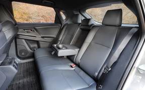 今度は、編集スタッフに運転を代わってもらい、後席にも座ってみることに。後席は、足元も頭の上の空間も広々としていて、シートバックの角度が変えられるうえに、シートヒーターも完備している。Cピラーには小さな窓があり、この少しの空間でも景色が見えることで、後席の圧迫感が少ないように感じた。車内の静粛性がとても高いので、前席と後席で会話が明瞭にできるところもいい。これなら家族や友人とロングドライブに出かけても、快適に楽しく過ごせるに違いない。