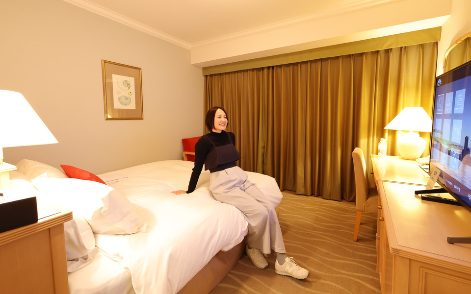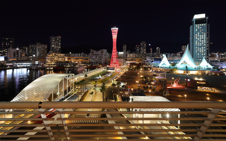 今回宿泊した「神戸メリケンパークオリエンタルホテル」(兵庫県神戸市中央区波止場町5-6)は、先ほど見つけた神戸ポートタワーにほど近く、神戸港の海の上に浮かんでいるかのように港の切先に建っていた。270度を海に囲まれており、部屋からは神戸ポートタワーや港、そして停泊している船などの美しい夜景を見ることができ、一気に旅の疲れが癒された。