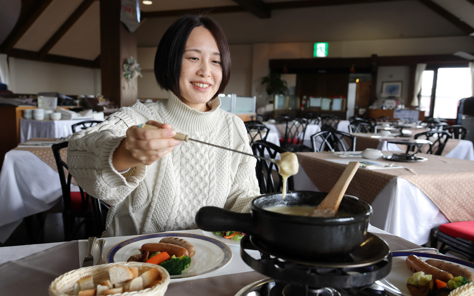 六甲山牧場にも電気自動車の急速充電器があるということで、そちらで充電をしながら、昼ご飯を食べることに。六甲山牧場では、牧場で育てた牛たちの牛乳を使ったチーズも製造しており、「JAPANナチュラルチーズコンテスト」で準グランプリに輝いたこともあるという。せっかくなのでレストランでもチーズフォンデュを注文。グツグツ煮立った香りのよいチーズにパンや野菜をたっぷりくぐらせて食べてみると……これが絶品! 愛情をたっぷりかけられた動物たちと触れ合うことができ、そして食事でもその恵みをいただくことができて大満足の時間だった。
