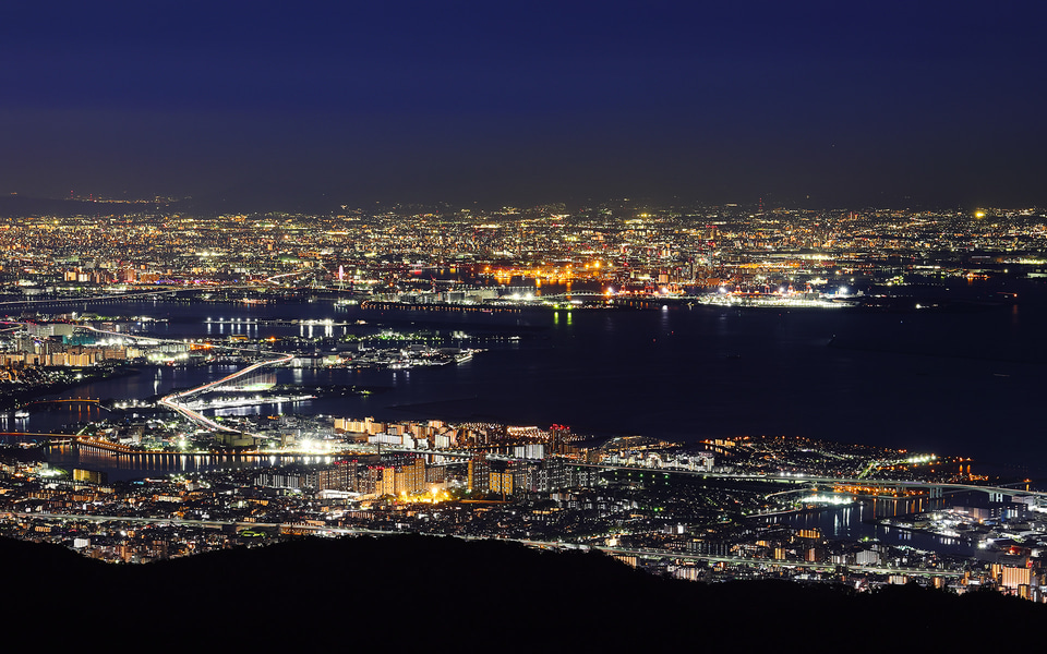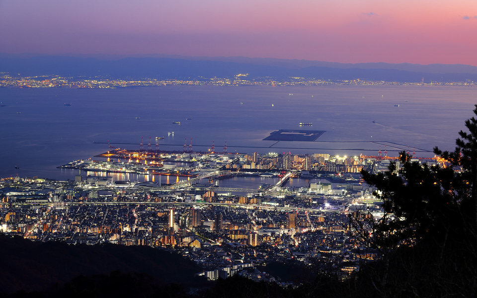 六甲ガーデンテラスの標高は約890m。日が落ちて来ると、グンと気温が低くなって、手を擦り合わせるような寒さになってきた。一方で街並みにはポツポツと明かりが灯りはじめ、まるで星のように瞬きが広がり続ける。眼下に広がる夜景は、宝石箱をひっくり返したような輝きに包まれていた。このきらめきを自分のなかになるべくしまって帰ろうと、しばらくその絶景を眺め、ホテルに戻ってからもその光景を思い出しながらゆっくりと眠りについた。