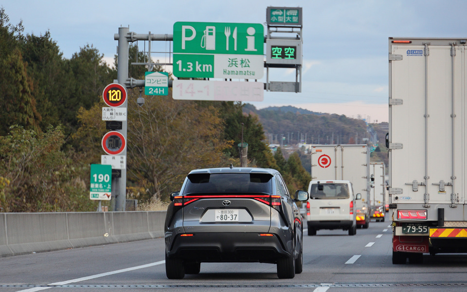 復路は新東名で120km/h走行もテスト。実用に近い乗り方で区間ごとの電費を計測してみた