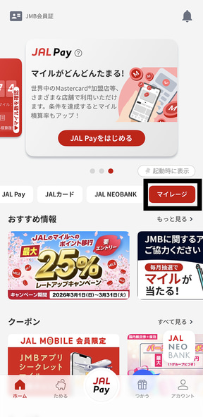 JMBアプリ内での「シークレットマイル」バナーの探し方と獲得方法