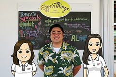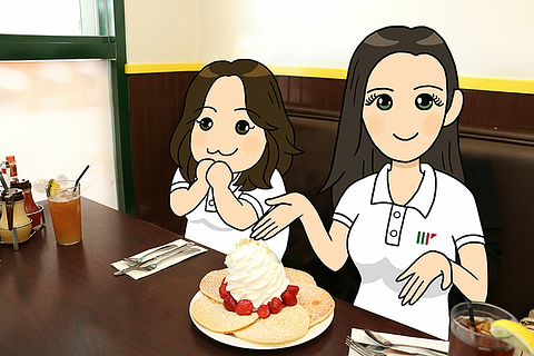 朝から元気いっぱいの2人は、ちょっと早めにホテルを出発。日本でも人気のカジュアルレストラン「Eggs 'n Things Guam」で朝食を楽しむことにしました。