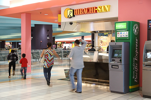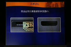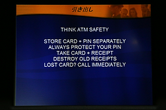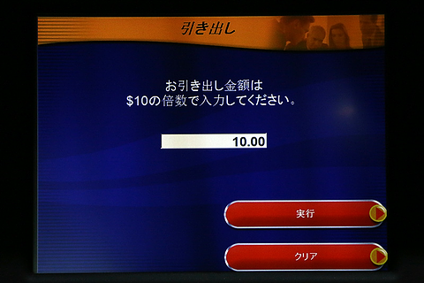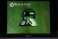 日本のATMはコンビニ設置型を含めて大きな液晶ディスプレイがあって分かりやすい表示が出るのが「あたりまえ」になっていますが、海外のATMは簡単なアルファベット表示だけのタイプが多数です……と説明するつもりでしたが、なんと、グアム銀行では最新型ATMへの切り換えを急ピッチで進めているそうで、本店はもちろん街中に設置されているATMも多国語対応の最新型に更新されていました。