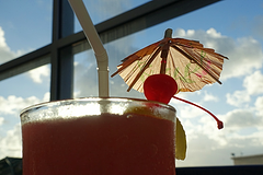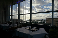 ドライブしたり、銀行に寄ったり、気が付けばあっと言う間にランチタイム……だけど、朝ガッツリ食べたのであんまりお腹が空いていないかも。そこで、なにか飲み物でもと立ち寄ったのは、水族館アンダーウォーターワールドの上にあるSEA GRILLレストラン。