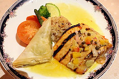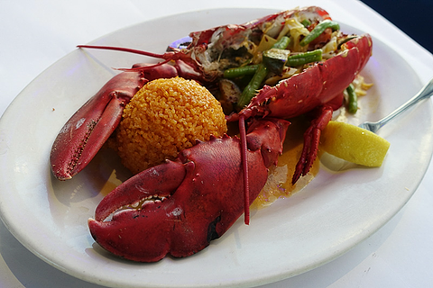 飲み物だけのつもりが、うっかりロブスターとレッドライスのプレートも1つだけ注文して(笑)、みんなでシェア。