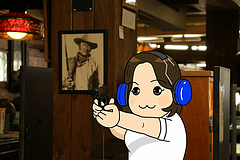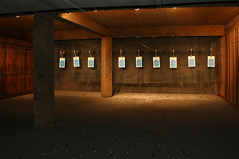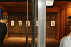 Y先輩、新人M、それぞれ店舗奥の射撃場へ入ります。