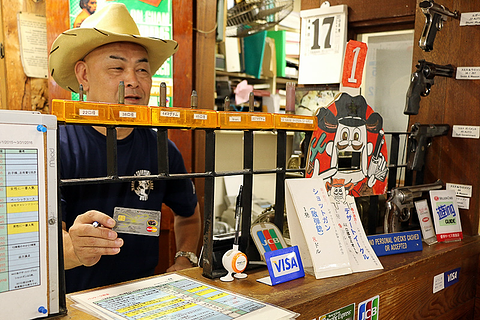 全弾撃ち終わったら、店内のドリンクカウンターで一休み。スコアカードの集計が終わるとオーナー自ら記念撮影してくれます。