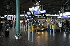 ヨーロッパ各地へのハブ空港として多くの人が利用するスキポール空港(http://www.booking.com/airport/nl/ams.ja.html)は、ギフトショップはもちろん、美術館、カジノまで空港内に完備された巨大空港。入国手続きを終え、チューリップが並んだ花屋さんを見て「オランダに来たんだな~」と実感しつつ空港出口に向かうと、電車チケット売り場とターミナルが見えてくる。