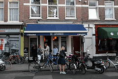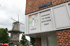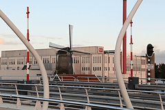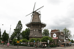 ちょっと早起きしてホテルを出て、散歩がてらトラムにも乗ってみた。地図を見ながら数駅走ると、ブロイエライ・テ・エイ醸造所の隣にある、以前は製粉所だったというデ・ホーイエル風車が見えてきた。アムステルダム市街地には現在6基の風車があるのだが、この風車はオランダ全土でも最も背の高い風車だそうだ。