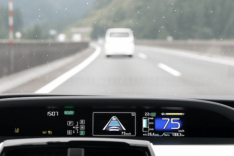 高速道路においては全車速追従装置付きのクルーズコントロールが役に立つ。機能をONにして適正車間を取りながら前走車に追従してくれる機能を満喫する。前走車が減速すれば車間距離を保持してプリウスも減速してくれるし、他車が前走車との間に入ってきても適正車間を取ってくれるので、安全にクルージングできる。