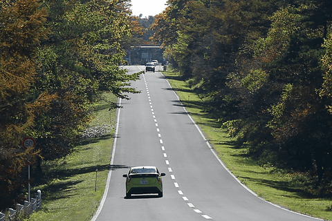 楽しいワインディングロードは続く。コーナリングではパッセンジャーに大きなロールを感じさせないので、ビギナードライバーでも心理的な不安感は小さいだろう。ベテランドライバーにとっても万座ハイウェーはプリウスの爽快で安全なハンドリングで気持ちよく駆け抜けられるに違いない。