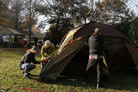 キャンプ部のみなさんもこれまでの活動を通してテントやターフの設置、アウトドアキッチンの準備などだいぶ手際がよくなったそうだが、小雀さん・仙田さんのプロ技には舌を巻くばかり。