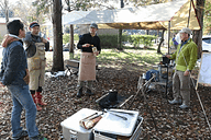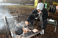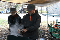 楽しみながらスキルアップしてきたキャンプ部の活動も2年目に入り、もう1段階ステップアップするべく今回はアウトドアコーディネーターの小雀陣二さんにレクチャーを依頼。「山と渓谷」などアウトドア雑誌でおなじみ、通称「チュンチュン」こと小雀さんは焚き火を使ったアウトドア料理の名手。レクチャーを受けて自分でやってみる……のも暫し忘れて、小雀さんの見事な腕裁きに見とれてしまいます。