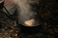 小雀さん:「下は薪でも炭でもよいのですが、炎が出ている状態ではなく熾火(おきび=赤色から白色になって燃えている状態)にして、火との距離を調整するのが大事ですね。なので、距離を調節しやすいリフターは持っていた方がよいでしょう。蓋の上に炭を乗せる場合は、まめに蓋を回して均一に熱すると美味しくできますよ。これからローストビーフを作るので、一緒にやってみましょう」