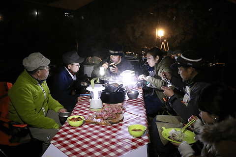 それではお待ちかねのディナー、スタート!美味しすぎて思わず真顔で感動、写真撮影もそこそこに、みんなで舌鼓を打ちつつ、キャンプ・アウトドア談義に花を咲かせました。