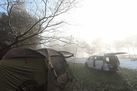 【紅葉と雪景色】「フリード+」でオートキャンプに行ってみた