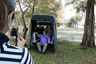 テント泊のみなさんはさておき、昨夜新「フリード+」で車中泊を実践したキャンプ部 片山さんの寝起きをカメラマンとともに直撃します。