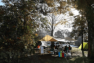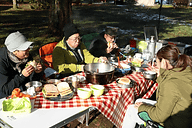 腹が減ってはなんとやら。タープやテント、それぞれが持ち寄ったキャンプグッズを一通り展開し終えたところでランチタイム。