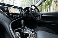 カムリはドライバーズカーでもあり、キャビンが広いだけではなくセンターコンソールが高い位置に配置され、解放された明るさとともに包まれる安心もうまくデザインされている。
