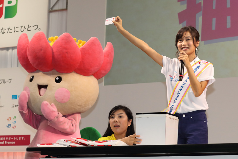 千葉県PRに小島瑠璃子さん登場! 熊本PRステージではくまモンと来場者が一緒に「えいえい、モーン!」