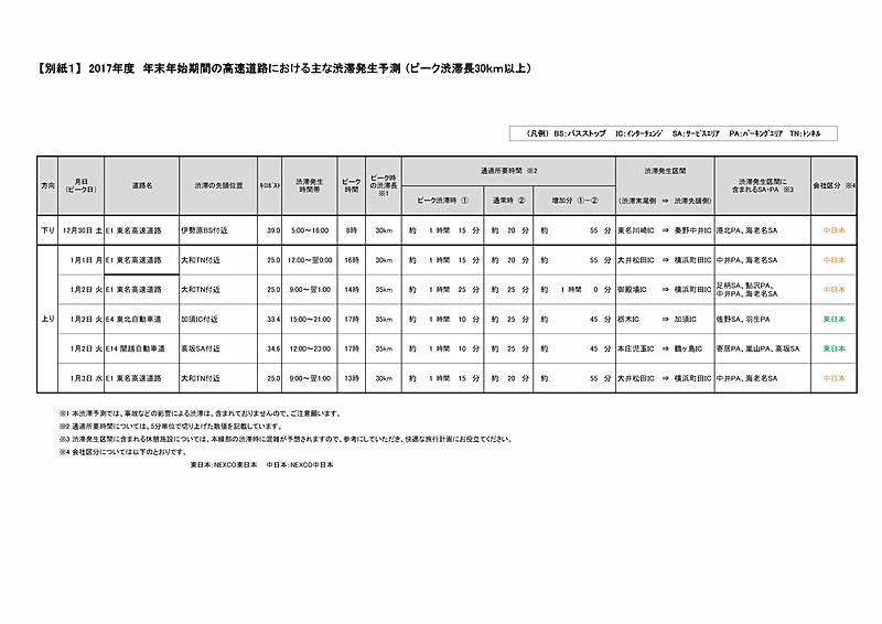 高速道路各社、年末年始の渋滞予測発表。上り下りとも1月2日に渋滞のピーク