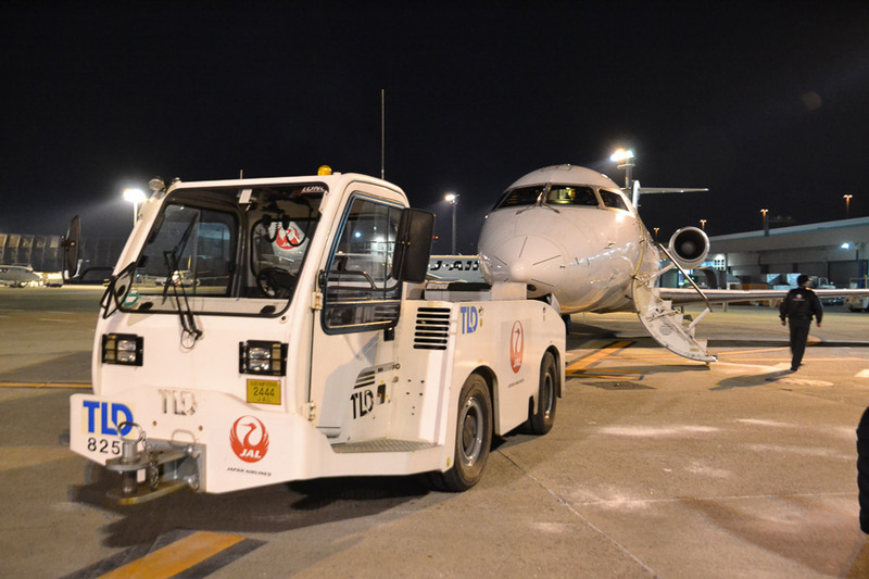 ジャルパックが企画したJ-AIRの「ボンバルディアCRJ退役記念チャーターツアー」。初日は伊丹空港にほど近い格納庫から