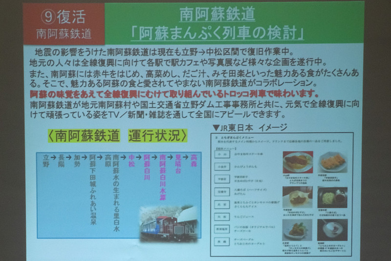 • JR豊肥本線が2020年8月ごろに運行再開。国道57号も10月には再開。平成28年熊本地震からの復旧見通し