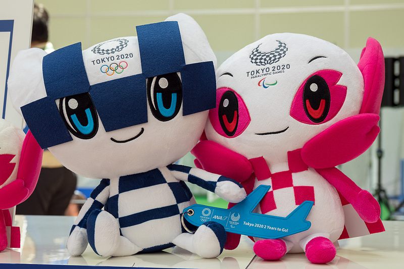 ANA、卓球&いけばな体験など羽田空港で東京オリンピック2年前イベント。「ミライトワ」「ソメイティ」も登場