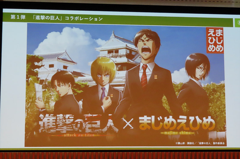愛媛県、「まじめえひめ」プロジェクトを始動。進撃の巨人もメガネとスーツで“まじめ”に(10/11)
