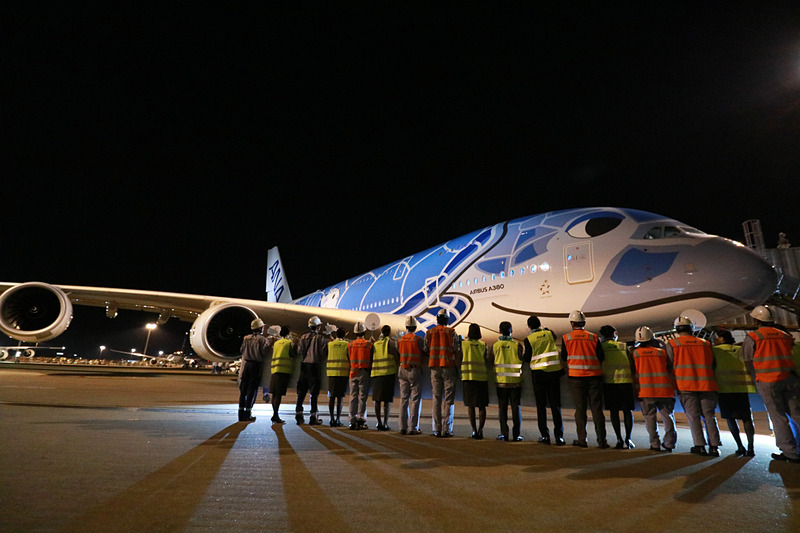 • ウミガメが間もなくハワイへ。ANAのエアバス A380型機「FLYING HONU」就航。ゲートでは式典や記念品配布