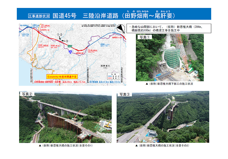 • 三陸沿岸道 久慈北IC~侍浜ICが3月1日15時開通。前後区間も2020年内~年度末に全線開通へ