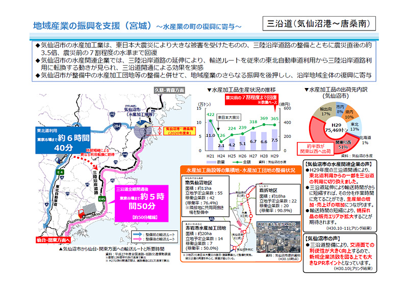 • 三陸沿岸道 気仙沼港IC~唐桑半島ICが3月6日開通。仙台~宮古を無料高速で接続。気仙沼湾横断橋も観光資源に