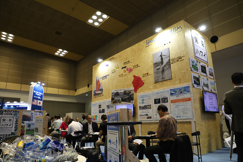 【ツーリズムEXPO 2019】ハワイ州観光局、ウミガメ形ゴミアートを制作した立命館宇治高校の生徒がブースを訪問。「海洋ゴミの危険さ知ってほしい」
