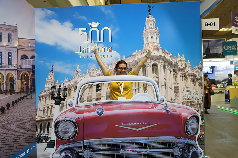 【ツーリズムEXPO 2019】クラシックカーの聖地、キューバの街並みで記念写真。SNS投稿でお土産も